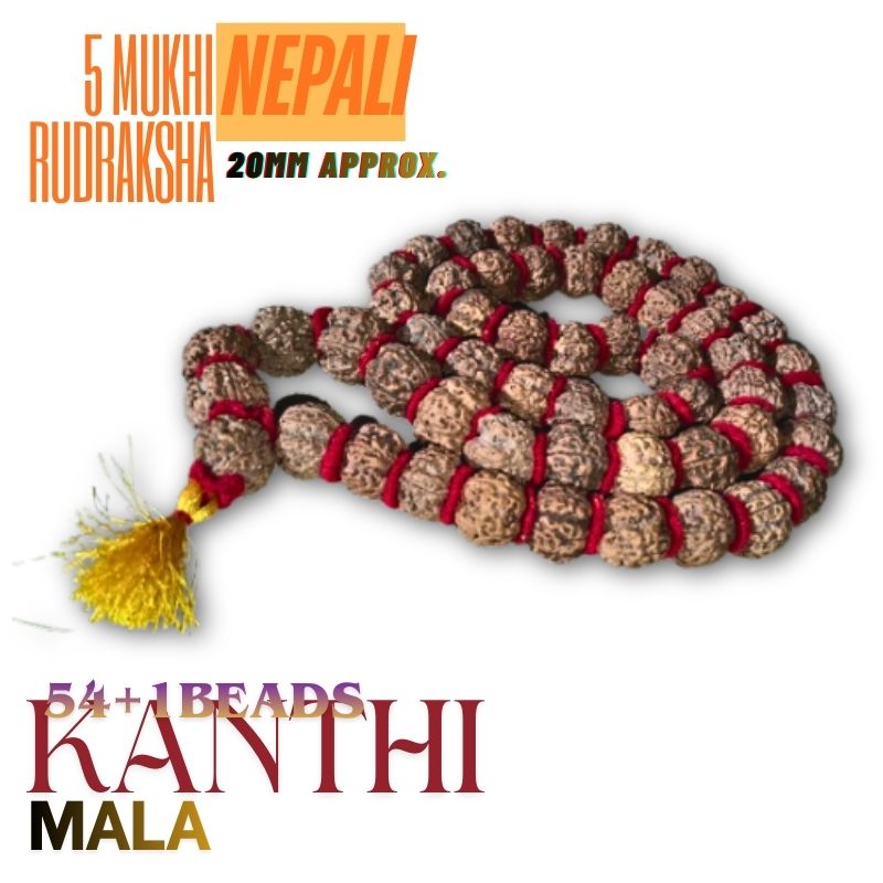 Mantrit 5 Mukhi Rudraksha Kanthi Mala 54+1 Beads & 20mm Approx | Nepali Certified