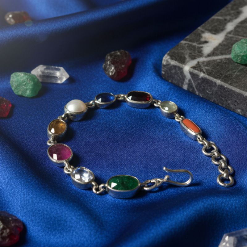 Original Navratna Bracelet Natural Stones in Silver Certified