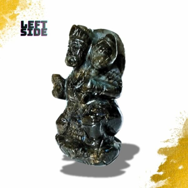Labradorite or Black Rainbow stone is a useful companion through change, imparting strength and perseverance. Labradorite Hanuman ji Idol It balances and protects the aura, raises consciousness and grounds spiritual energies. Labradorite banishes fears and insecurities, and strengthens faith in the self and trust in the universe. It stimulates the imagination and calms an overactive mind, developing enthusiasm and new ideas.