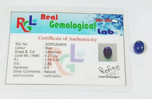 Lapis Lazuli (Lazward) Stone Certified & Mantrit (Energized) – 4 Carat