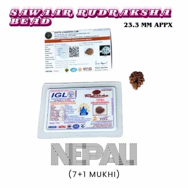 Abhimantrit Natural Sawaar Rudraksha (7+1) – 2.79 gram & 23.3mm With X-Report & Lab Certification