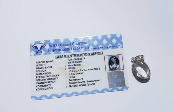Mantrit (Energized) Shukra Mani (White Quartz) Stone & in Silver Locket- 10 Carat