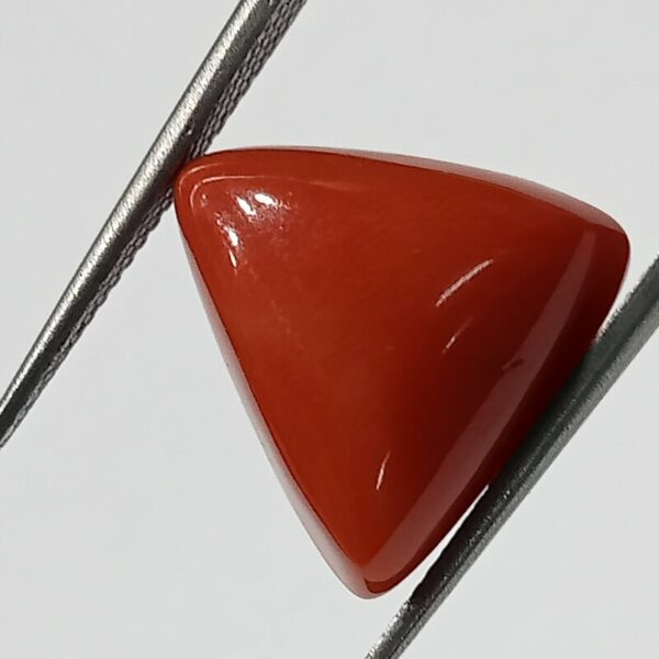 Triangle Red Coral is a precious, bright red organic gemstone formed in the deep sea by marine creatures called coral polyps (Corallium rubrum). It is a popular astrological gemstone worn to ensure success in leadership roles, sports, business, and health.