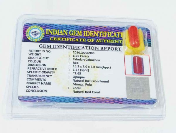 Lab-Certified Red Coral/ Moonga Stone & Mantrit (Energized) 6.25 Carat