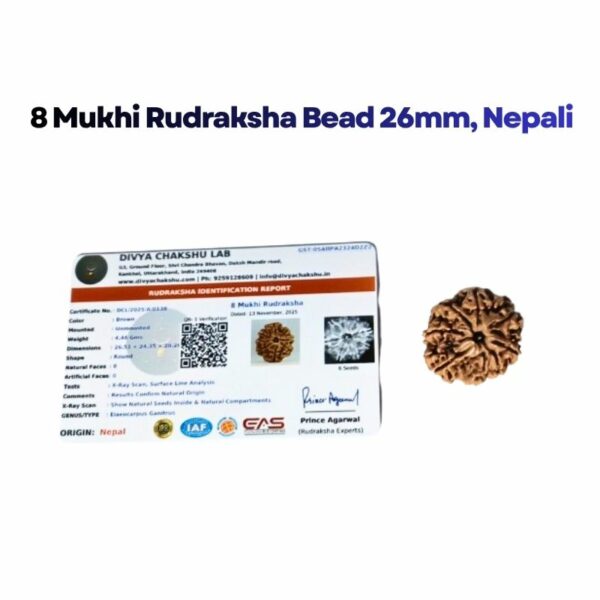 Natural 8 Mukhi Rudraksha (Nepali) Bead 26mm Approx Big size – Very Rare | Certified X-ray Report
