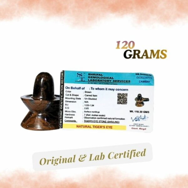 Original Tiger Eye Shivling Mantrit (Energized) & Certified 120 Gram Approx.